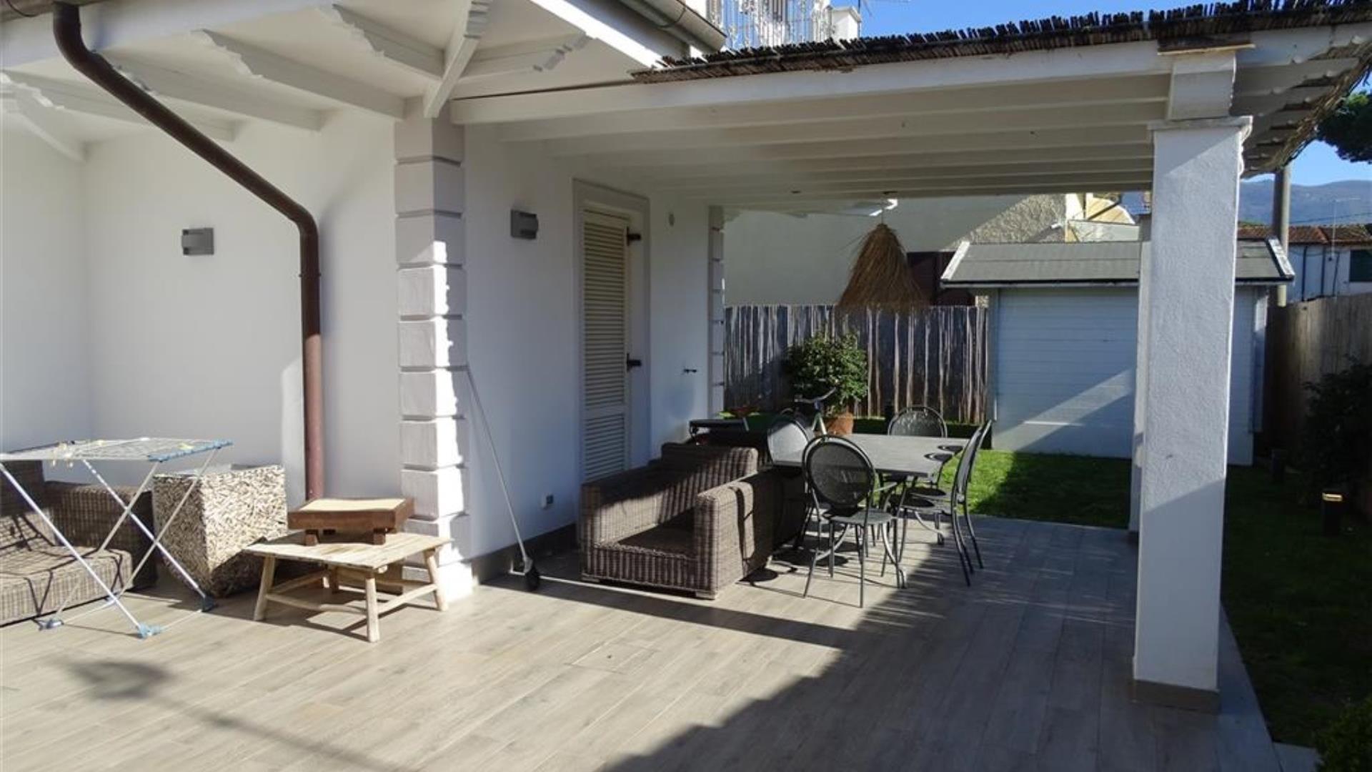 Cinquale a soli 700 mt dal mare splendida porzione di villa con tre lati liberi , pari al nuovo. Composta da ingresso , ampio soggiorno con angolo cottura e zona living , una camera e un bagno al piano terra.